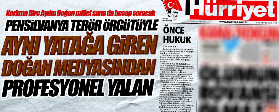 Şantajcı terör örgütüyle işbirliği yapıp, Türkiye Cumhuriyeti devletine savaş açan Aydın Doğan’ın gazetesindeki bu açıklama nasıl profesyonel yalan söylendiğinin kanıtı. Yalan, iftira, kahpeliği leblebi çekirdek gibi tüketen paralel çeteyle aynı yatağa girenden ne hayır beklenir, böyle yalanlarla ancak kendilerini kandırırlar.